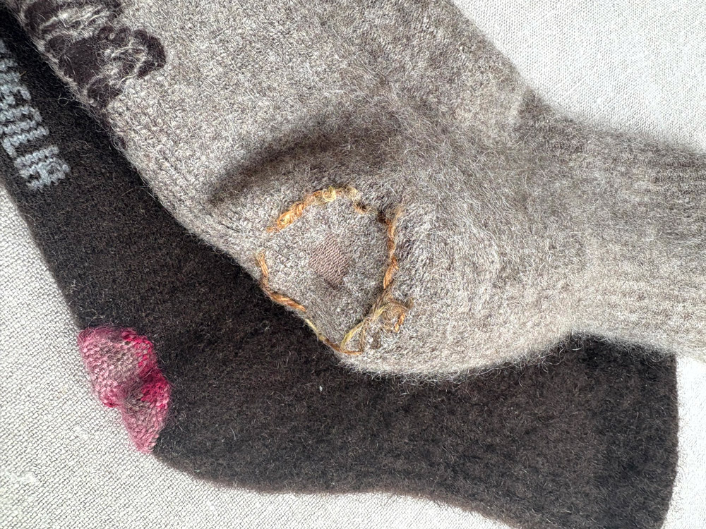 こちらがお客様がダーニングしたソックス