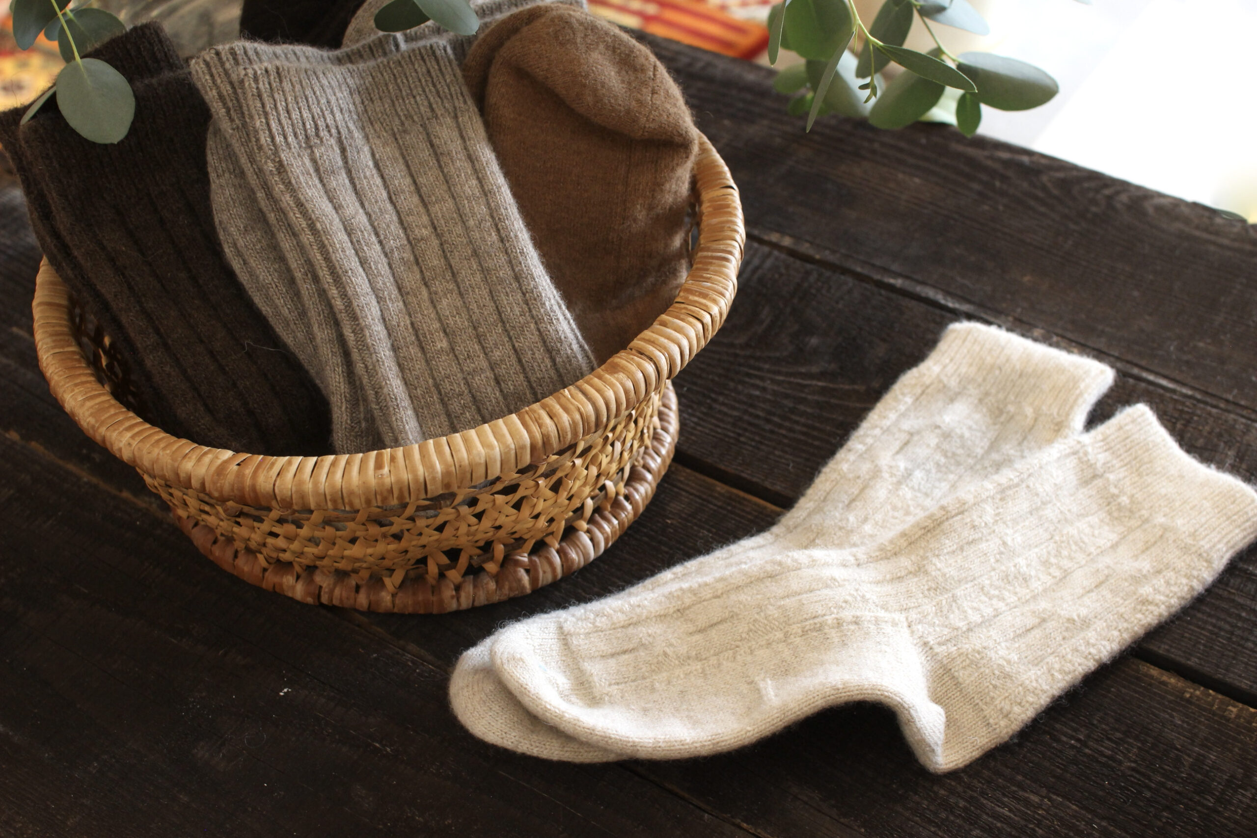 今回ダーニングが施された靴下は、モンゴルのヤク靴下